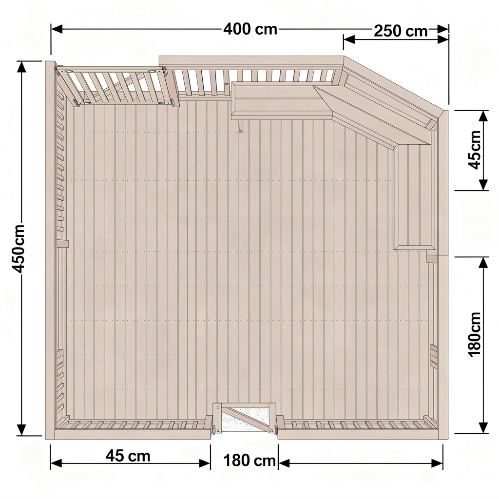 Custom-sized composite deck with premium materials. Includes planning, permits, acquisition of top-tier equipment and materials, area preparation and protection, professional deck installation with an integrated deck roof, expert finishes, comprehensive cleanup, and detailed 3D drawings to envision your project.